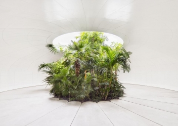 Пространство, созданное внутри, является внешним и открытым, но в то же время закрытым. Людям, посещающим это пространство, предоставляется возможность подняться по сторонам основного строения по лестнице, ведущей на платформы и террасы, откуда открывается вид на открытое пространство.